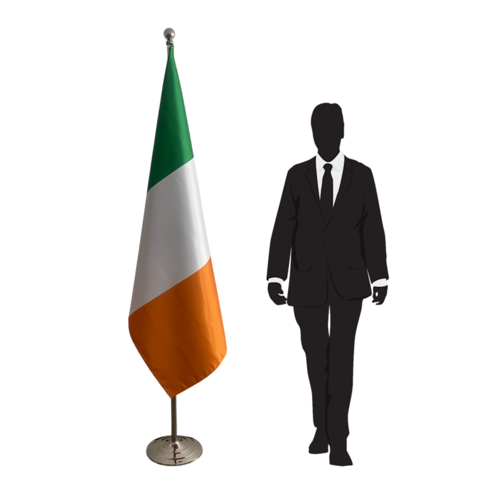 Présentez le drapeau Irlande avec un socle et un mât d’exception, disponibles en inox avec finition dorée ou argentée, en bois raffiné ou en marbre blanc ou noir. Le mât solide peut être équipé d’une pointe type lance ou type boule, pour une présentation distinguée et professionnelle. Idéal pour ambassades, consulats, salles de réunion, universités et bureaux, ce support prestigieux garantit une mise en valeur parfaite du drapeau lors de cérémonies officielles, expositions, réunions importantes ou événements institutionnels, alliant robustesse, esthétique et fonctionnalité optimale.